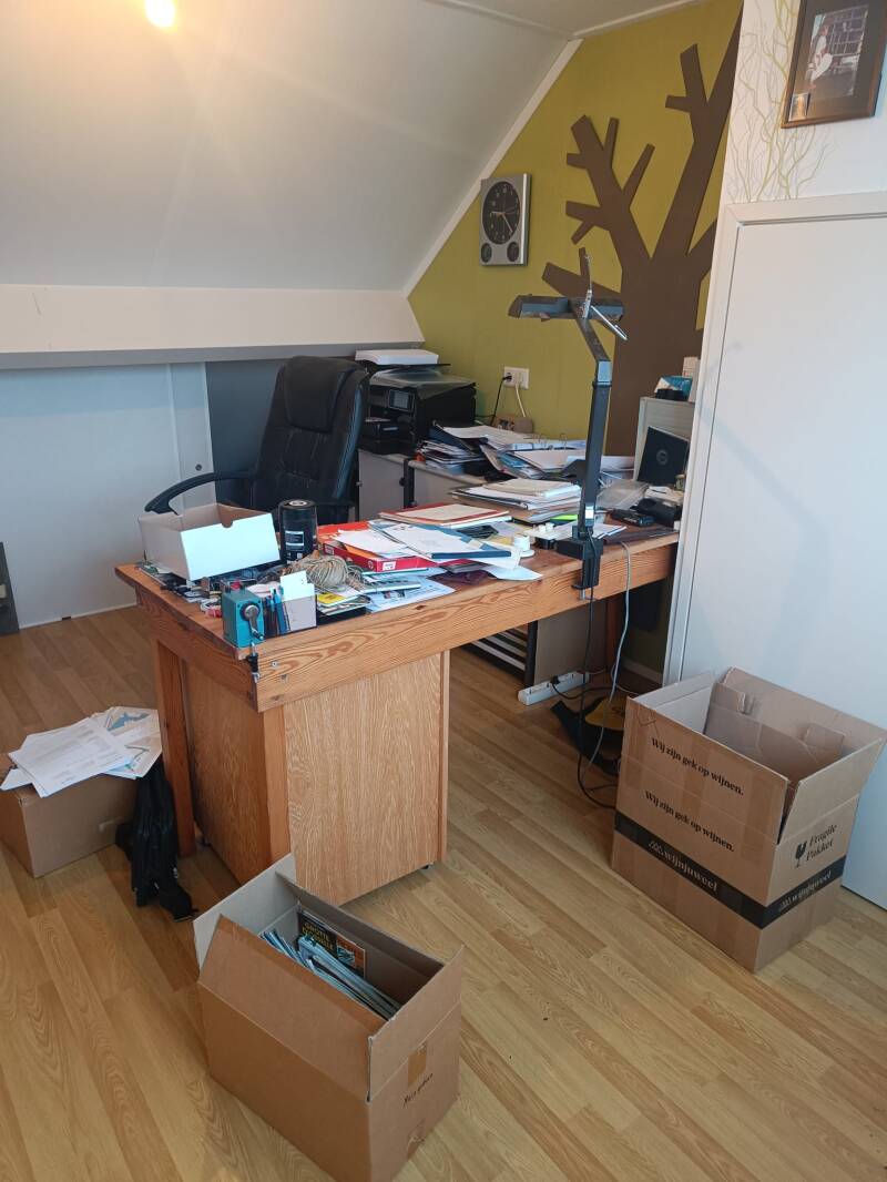 Wat er al jaren lag, werd doorgenomen en heel veel bleek weg te kunnen. Vooral veel papierwerk, wel 40 ordners vol verdwenen bij het oud papier!